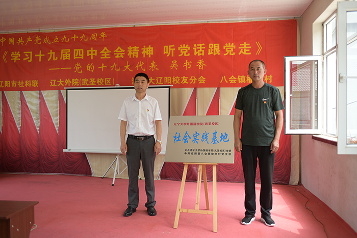 6月27日,在沈阳师范大学驻辽阳市八会镇榆树村扶贫“第一书记”梁玉玺的协调下,我院与辽阳市八会镇榆树村共建大学生社会实践基地揭牌仪式在榆树村村部举行。学院党委副书记于守海、办公室主任王群、宣传部长孟庆研和团委毛毳老师出席了仪式。仪式由驻村扶贫“第一书记”梁玉玺主持。大学生实践基地的成立将鼓励有志学子走进基层、了解基层,把理论知识与社会实践相结合,更好地增强大学生服务意识、责任意识,为他们全面发展和成长成才提供了优质的土壤。